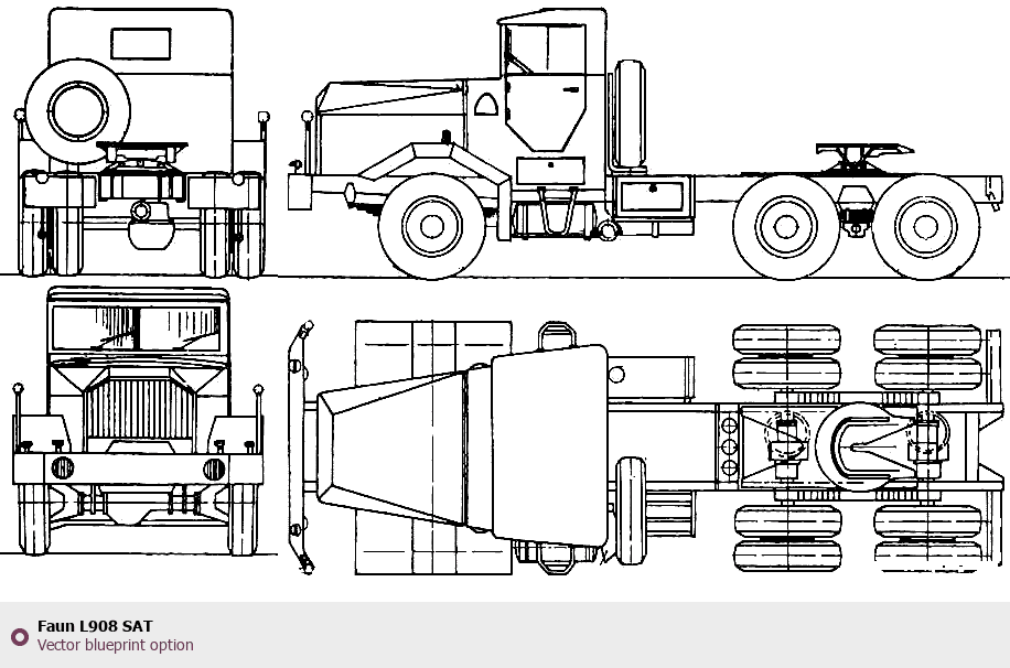 Raster blueprint of the Faun L908 SAT Heavy Truck. This free downloadable image can be used for graphic projects, digital design, and 3D modeling. The file provides accurate exterior proportions of the vehicle. Body type: Heavy Truck.