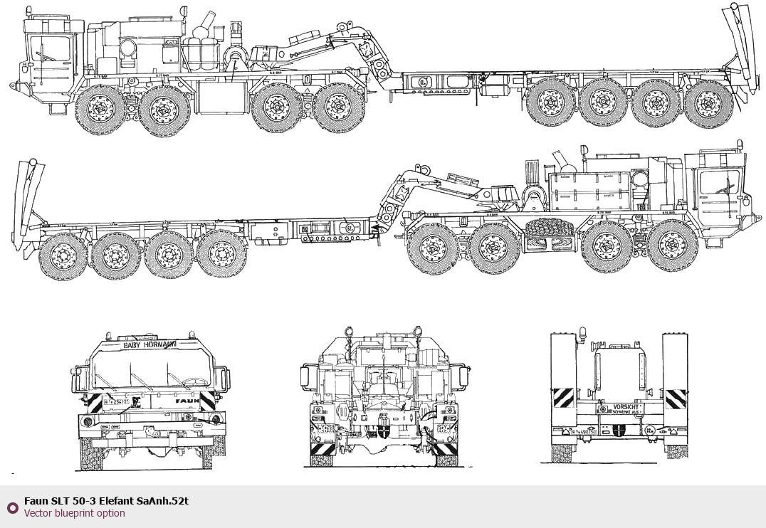Raster blueprint of the Faun SLT 50-3 Elefant SaAnh.52t Heavy Truck. This free downloadable image can be used for graphic projects, digital design, and 3D modeling. The file provides accurate exterior proportions of the vehicle. Body type: Heavy Truck.