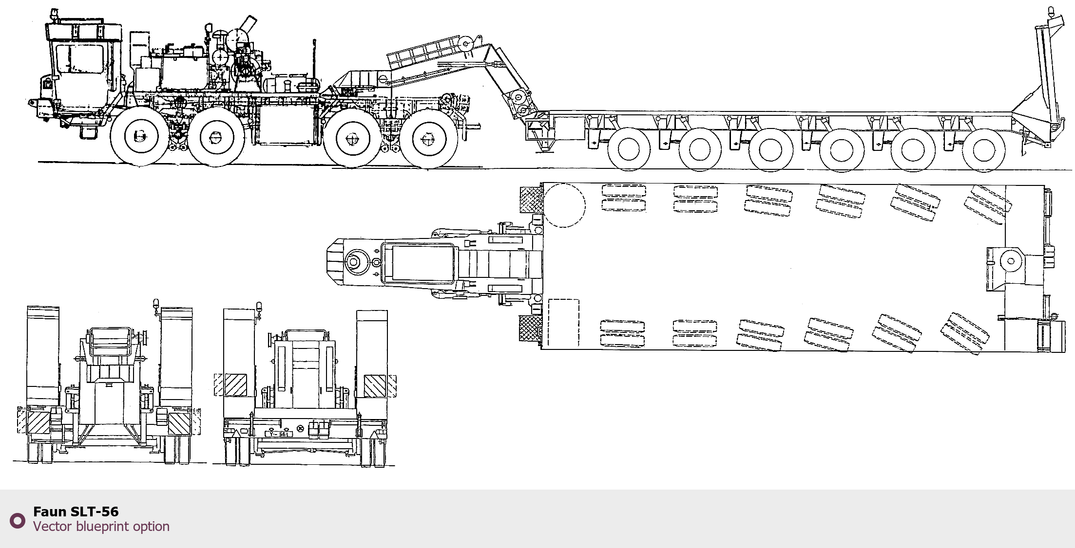 Raster blueprint of the Faun SLT-56 Heavy Truck. This free downloadable image can be used for graphic projects, digital design, and 3D modeling. The file provides accurate exterior proportions of the vehicle. Body type: Heavy Truck.