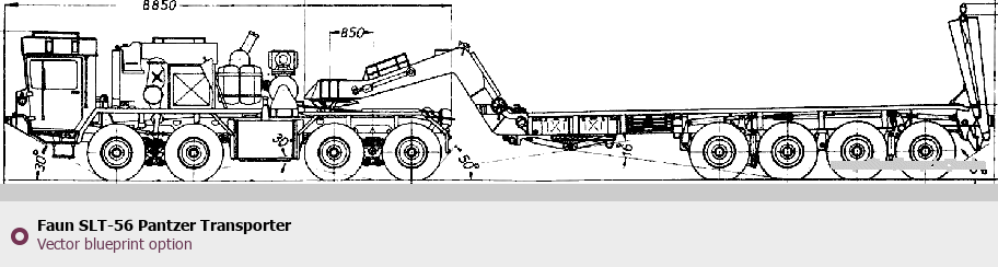 Raster blueprint of the Faun SLT-56 Pantzer Transporter Heavy Truck. This free downloadable image can be used for graphic projects, digital design, and 3D modeling. The file provides accurate exterior proportions of the vehicle. Body type: Heavy Truck.