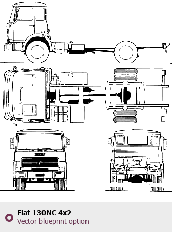 Raster blueprint of the Fiat 130NC 4x2 Heavy Truck. This free downloadable image can be used for graphic projects, digital design, and 3D modeling. The file provides accurate exterior proportions of the vehicle. Body type: Heavy Truck.