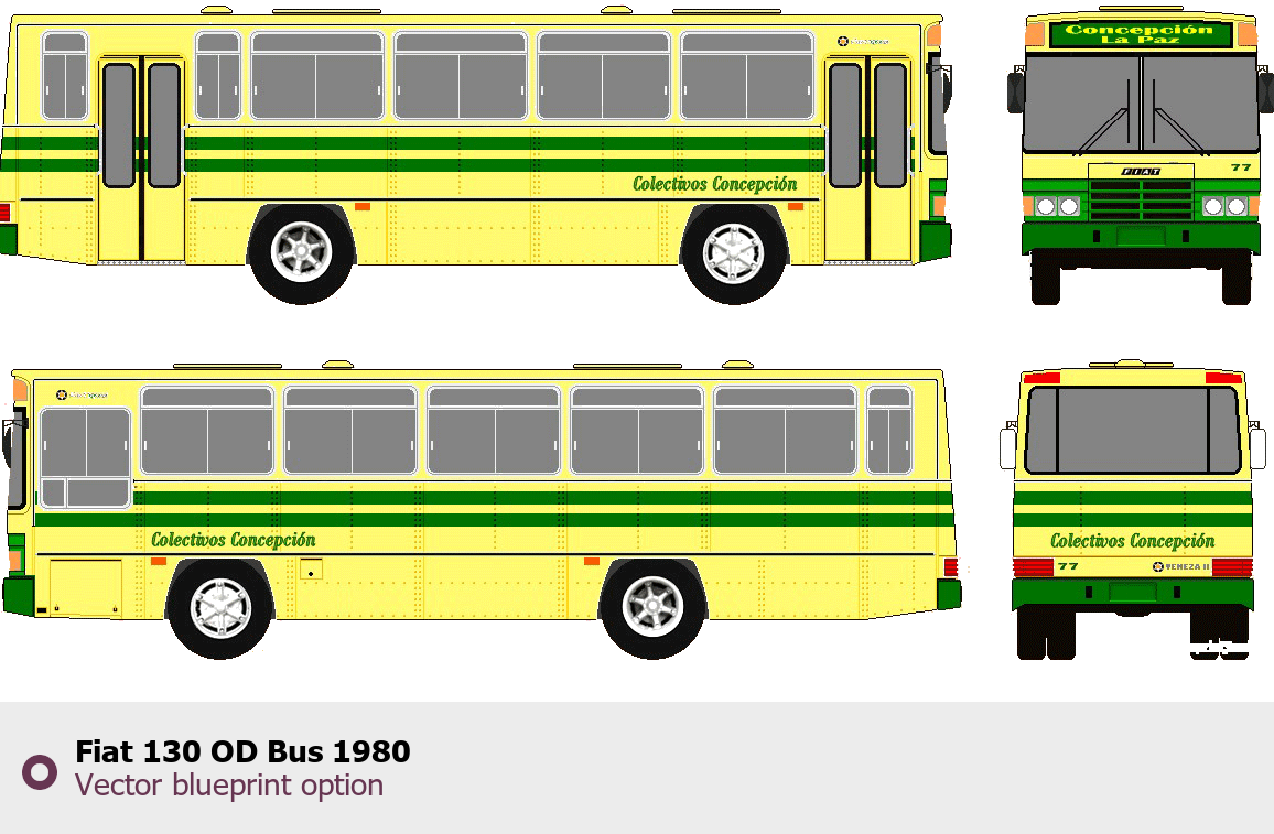 Raster blueprint of the 1980 Fiat 130 OD Bus Bus. This free downloadable image can be used for graphic projects, digital design, and 3D modeling. The file provides accurate exterior proportions of the vehicle. Model year: 1980. Body type: Bus.