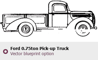 Raster blueprint of the 1939 Ford 0.75ton Pick-up Truck Pickup Truck. This free downloadable image can be used for graphic projects, digital design, and 3D modeling. The file provides accurate exterior proportions of the vehicle. Model year: 1939. Body type: Pickup Truck.