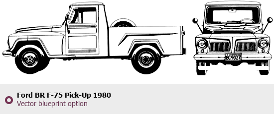 Raster blueprint of the 1980 Ford BR F-75 Pick-Up Pickup Truck. This free downloadable image can be used for graphic projects, digital design, and 3D modeling. The file provides accurate exterior proportions of the vehicle. Model year: 1980. Body type: Pickup Truck.