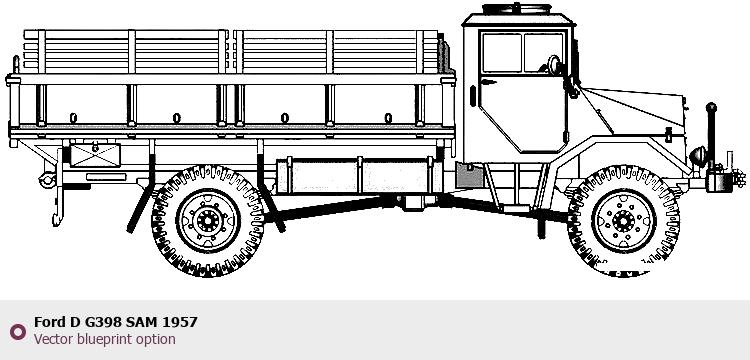 Raster blueprint of the Ford D G398 SAM 1957 Heavy Truck. This free downloadable image can be used for graphic projects, digital design, and 3D modeling. The file provides accurate exterior proportions of the vehicle. Body type: Heavy Truck.
