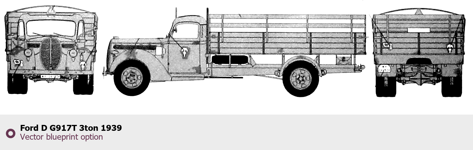 Raster blueprint of the 1939 Ford D G917T 3ton Heavy Truck. This free downloadable image can be used for graphic projects, digital design, and 3D modeling. The file provides accurate exterior proportions of the vehicle. Model year: 1939. Body type: Heavy Truck.
