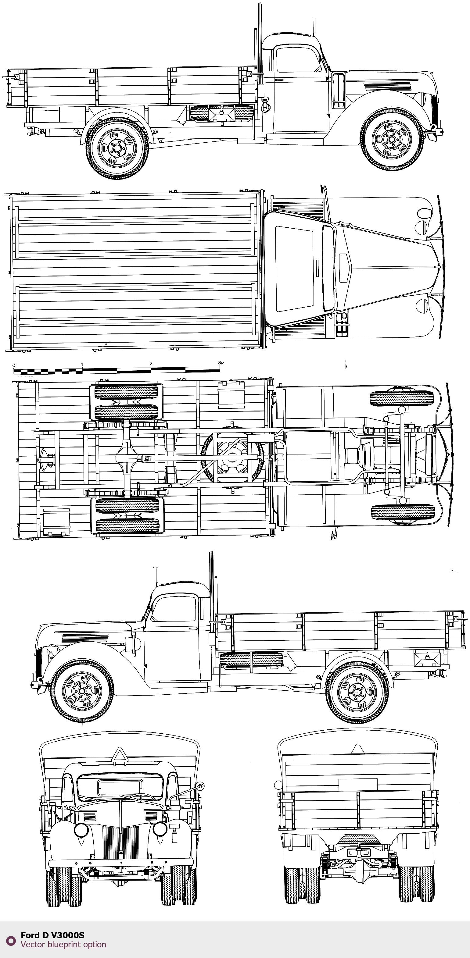 Raster blueprint of the Ford D V3000S Heavy Truck. This free downloadable image can be used for graphic projects, digital design, and 3D modeling. The file provides accurate exterior proportions of the vehicle. Body type: Heavy Truck.