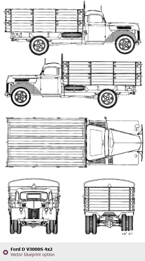 Raster blueprint of the Ford D V3000S 4x2 Heavy Truck. This free downloadable image can be used for graphic projects, digital design, and 3D modeling. The file provides accurate exterior proportions of the vehicle. Body type: Heavy Truck.