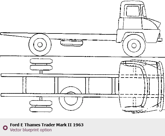 Raster blueprint of the 1963 Ford E Thames Trader Mark II Heavy Truck. This free downloadable image can be used for graphic projects, digital design, and 3D modeling. The file provides accurate exterior proportions of the vehicle. Model year: 1963. Body type: Heavy Truck.