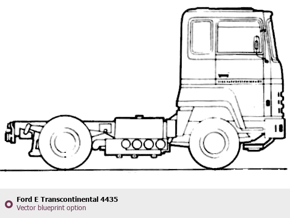 Raster blueprint of the Ford E Transcontinental 4435 Heavy Truck. This free downloadable image can be used for graphic projects, digital design, and 3D modeling. The file provides accurate exterior proportions of the vehicle. Body type: Heavy Truck.