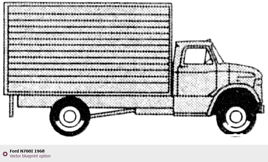Raster blueprint of the 1968 Ford N700I Heavy Truck. This free downloadable image can be used for graphic projects, digital design, and 3D modeling. The file provides accurate exterior proportions of the vehicle. Model year: 1968. Body type: Heavy Truck.