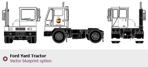 Raster blueprint of the Ford Yard Tractor Heavy Truck. This free downloadable image can be used for graphic projects, digital design, and 3D modeling. The file provides accurate exterior proportions of the vehicle. Body type: Heavy Truck.