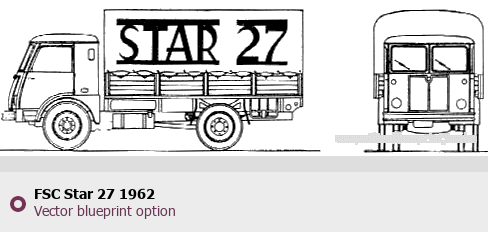 Raster blueprint of the 1962 FSC Star 27 Heavy Truck. This free downloadable image can be used for graphic projects, digital design, and 3D modeling. The file provides accurate exterior proportions of the vehicle. Model year: 1962. Body type: Heavy Truck.