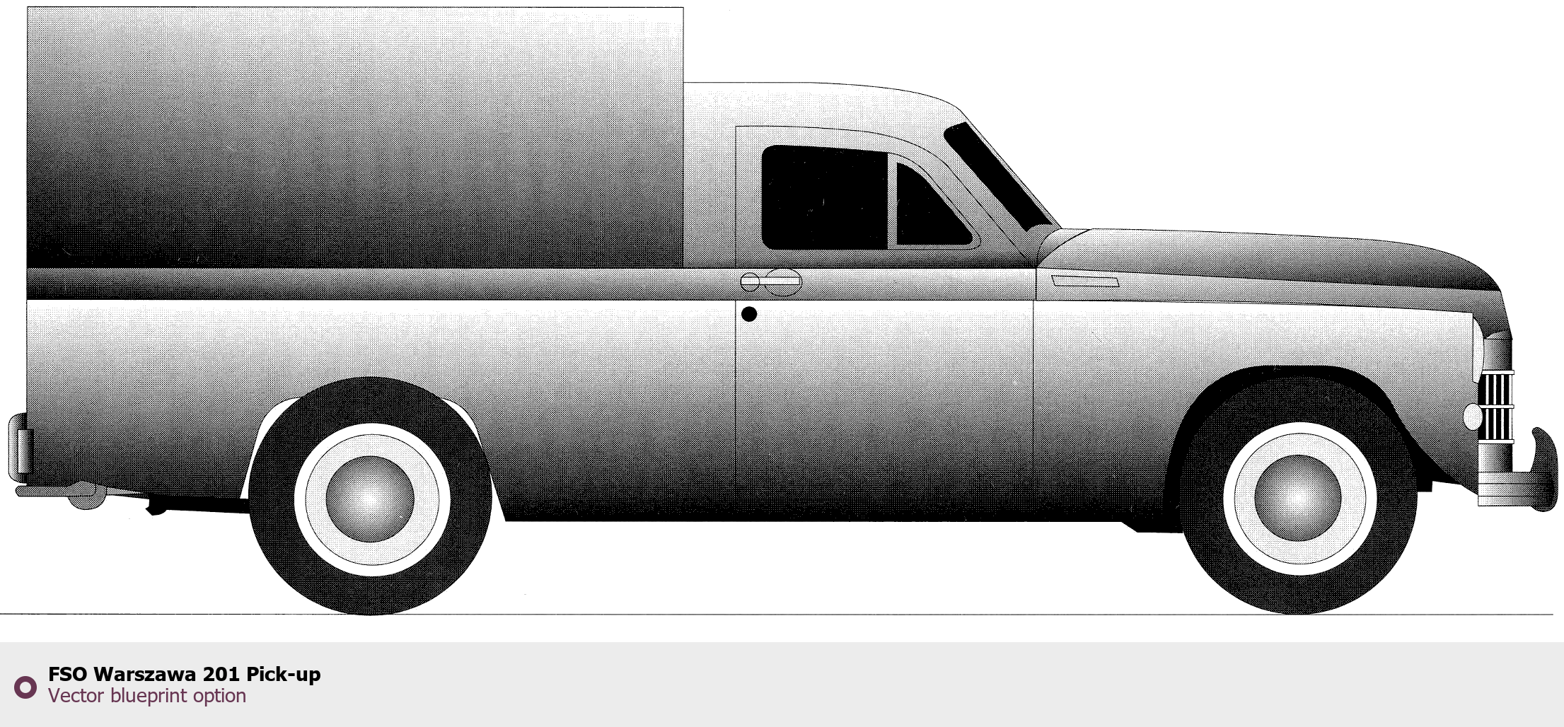 Raster blueprint of the FSO Warszawa 201 Pick-up Pickup Truck. This free downloadable image can be used for graphic projects, digital design, and 3D modeling. The file provides accurate exterior proportions of the vehicle. Body type: Pickup Truck.