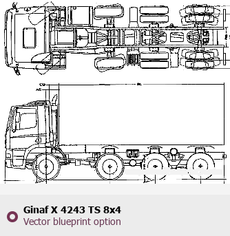 Raster blueprint of the GINAF X 4243 TS 8x4 Heavy Truck. This free downloadable image can be used for graphic projects, digital design, and 3D modeling. The file provides accurate exterior proportions of the vehicle. Body type: Heavy Truck.
