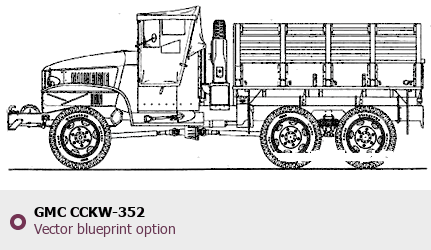 Raster blueprint of the GMC CCKW-352 Heavy Truck. This free downloadable image can be used for graphic projects, digital design, and 3D modeling. The file provides accurate exterior proportions of the vehicle. Body type: Heavy Truck.
