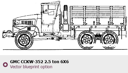 Raster blueprint of the GMC CCKW-352 2.5 ton 6X6 Heavy Truck. This free downloadable image can be used for graphic projects, digital design, and 3D modeling. The file provides accurate exterior proportions of the vehicle. Body type: Heavy Truck.