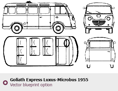 Raster blueprint of the 1955 Goliath Express Luxus-Microbus Heavy Truck. This free downloadable image can be used for graphic projects, digital design, and 3D modeling. The file provides accurate exterior proportions of the vehicle. Model year: 1955. Body type: Heavy Truck.