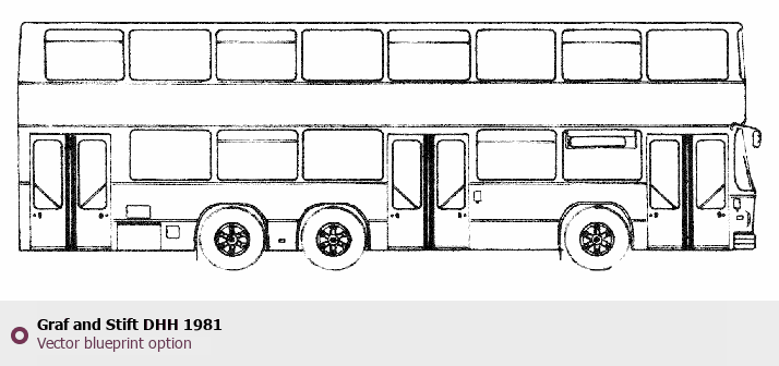 Raster blueprint of the 1981 Graf and Stift DHH Bus. This free downloadable image can be used for graphic projects, digital design, and 3D modeling. The file provides accurate exterior proportions of the vehicle. Model year: 1981. Body type: Bus.