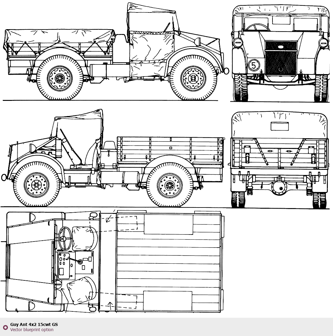 Raster blueprint of the Guy Ant 4x2 15cwt GS Heavy Truck. This free downloadable image can be used for graphic projects, digital design, and 3D modeling. The file provides accurate exterior proportions of the vehicle. Body type: Heavy Truck.