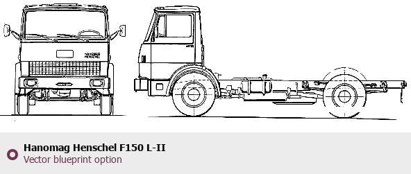 Raster blueprint of the Hanomag Henschel F150 L-II Heavy Truck. This free downloadable image can be used for graphic projects, digital design, and 3D modeling. The file provides accurate exterior proportions of the vehicle. Body type: Heavy Truck.