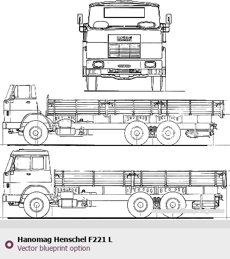 Raster blueprint of the Hanomag Henschel F221 L Heavy Truck. This free downloadable image can be used for graphic projects, digital design, and 3D modeling. The file provides accurate exterior proportions of the vehicle. Body type: Heavy Truck.