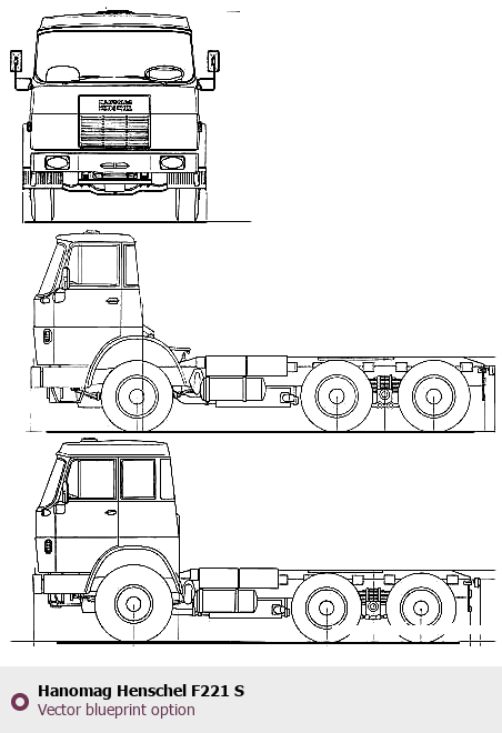 Raster blueprint of the Hanomag Henschel F221 S Heavy Truck. This free downloadable image can be used for graphic projects, digital design, and 3D modeling. The file provides accurate exterior proportions of the vehicle. Body type: Heavy Truck.
