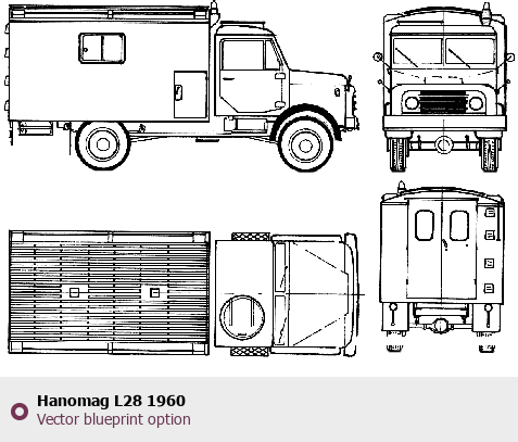 Raster blueprint of the 1960 Hanomag L28 Heavy Truck. This free downloadable image can be used for graphic projects, digital design, and 3D modeling. The file provides accurate exterior proportions of the vehicle. Model year: 1960. Body type: Heavy Truck.