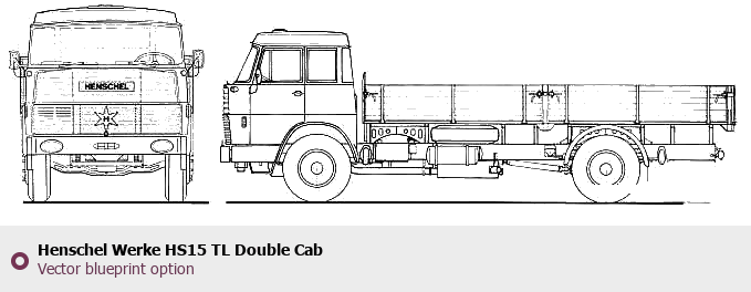 Raster blueprint of the Henschel Werke HS15 TL Double Cab Heavy Truck. This free downloadable image can be used for graphic projects, digital design, and 3D modeling. The file provides accurate exterior proportions of the vehicle. Body type: Heavy Truck.