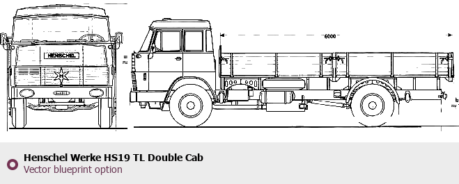 Raster blueprint of the Henschel Werke HS19 TL Double Cab Heavy Truck. This free downloadable image can be used for graphic projects, digital design, and 3D modeling. The file provides accurate exterior proportions of the vehicle. Body type: Heavy Truck.