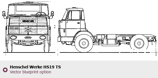 Raster blueprint of the Henschel Werke HS19 TS Heavy Truck. This free downloadable image can be used for graphic projects, digital design, and 3D modeling. The file provides accurate exterior proportions of the vehicle. Body type: Heavy Truck.
