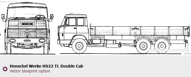 Raster blueprint of the Henschel Werke HS22 TL Double Cab Heavy Truck. This free downloadable image can be used for graphic projects, digital design, and 3D modeling. The file provides accurate exterior proportions of the vehicle. Body type: Heavy Truck.