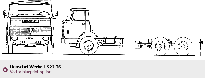 Raster blueprint of the Henschel Werke HS22 TS Heavy Truck. This free downloadable image can be used for graphic projects, digital design, and 3D modeling. The file provides accurate exterior proportions of the vehicle. Body type: Heavy Truck.