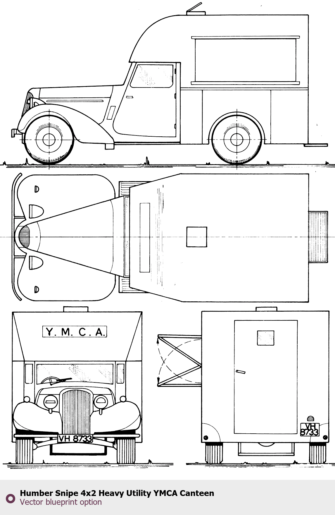 Raster blueprint of the Humber Snipe 4x2 Heavy Utility YMCA Canteen Tag. This free downloadable image can be used for graphic projects, digital design, and 3D modeling. The file provides accurate exterior proportions of the vehicle. Body type: Tag.