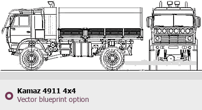 Raster blueprint of the KamAZ 4911 4x4 Heavy Truck. This free downloadable image can be used for graphic projects, digital design, and 3D modeling. The file provides accurate exterior proportions of the vehicle. Body type: Heavy Truck.