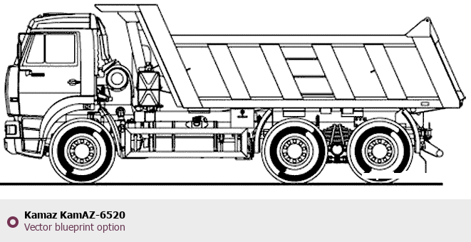 Raster blueprint of the KamAZ KamAZ-6520 Heavy Truck. This free downloadable image can be used for graphic projects, digital design, and 3D modeling. The file provides accurate exterior proportions of the vehicle. Body type: Heavy Truck.