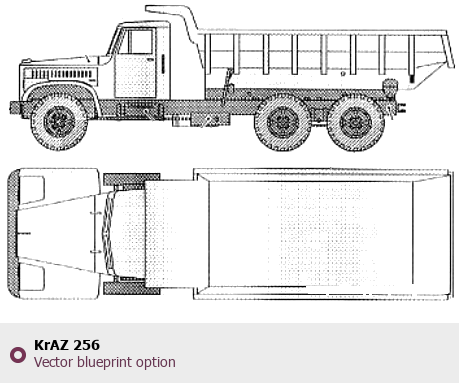 Raster blueprint of the KrAZ 256 Heavy Truck. This free downloadable image can be used for graphic projects, digital design, and 3D modeling. The file provides accurate exterior proportions of the vehicle. Body type: Heavy Truck.