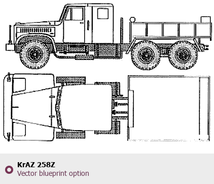 Raster blueprint of the KrAZ 258Z Heavy Truck. This free downloadable image can be used for graphic projects, digital design, and 3D modeling. The file provides accurate exterior proportions of the vehicle. Body type: Heavy Truck.