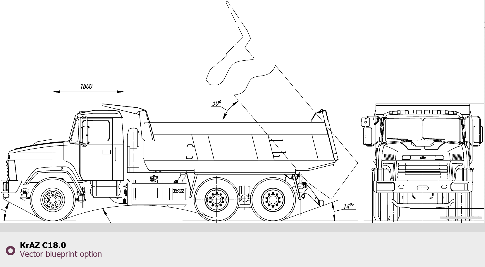 Raster blueprint of the KrAZ C18.0 Heavy Truck. This free downloadable image can be used for graphic projects, digital design, and 3D modeling. The file provides accurate exterior proportions of the vehicle. Body type: Heavy Truck.
