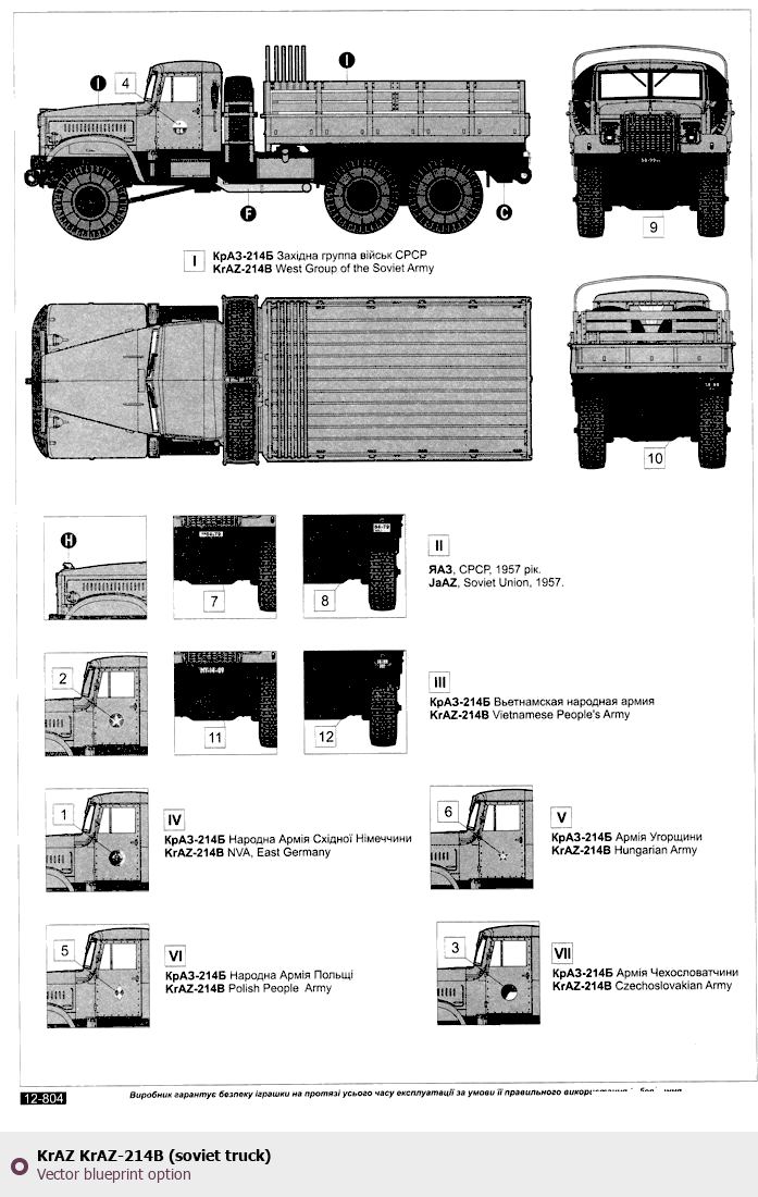 Raster blueprint of the KrAZ KrAZ-214B (soviet truck) Heavy Truck. This free downloadable image can be used for graphic projects, digital design, and 3D modeling. The file provides accurate exterior proportions of the vehicle. Body type: Heavy Truck.