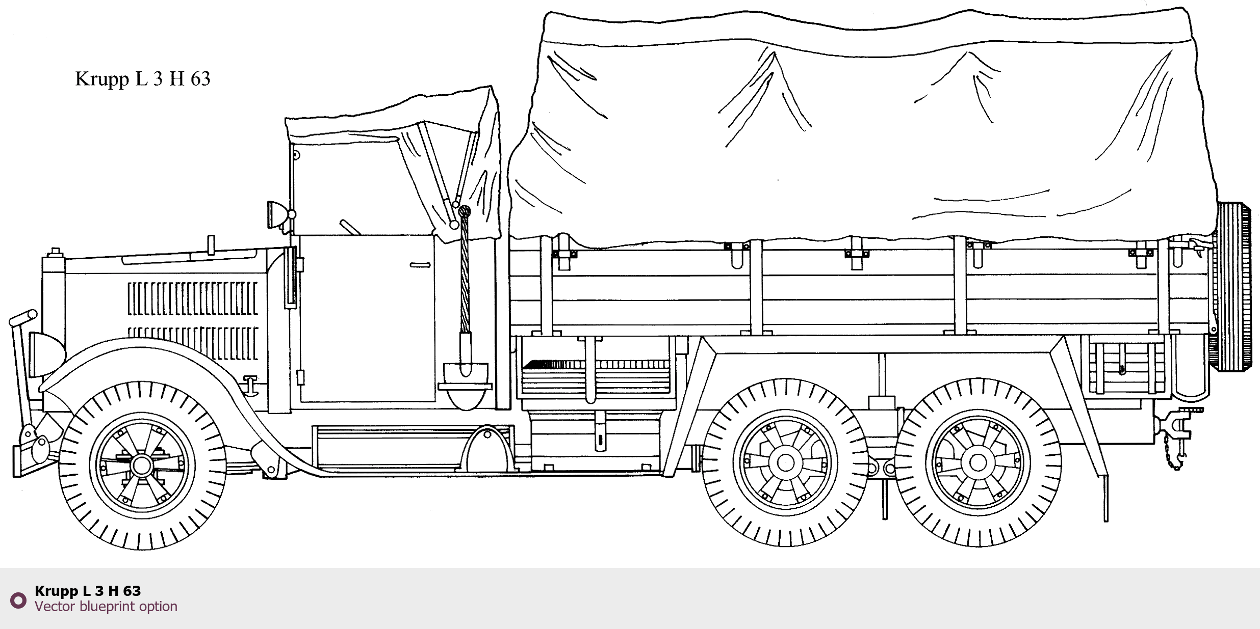 Raster blueprint of the Krupp L 3 H 63 Heavy Truck. This free downloadable image can be used for graphic projects, digital design, and 3D modeling. The file provides accurate exterior proportions of the vehicle. Body type: Heavy Truck.