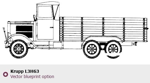 Raster blueprint of the Krupp L3H63 Heavy Truck. This free downloadable image can be used for graphic projects, digital design, and 3D modeling. The file provides accurate exterior proportions of the vehicle. Body type: Heavy Truck.