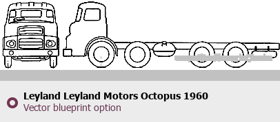 Raster blueprint of the 1960 Leyland Motors Motors Octopus Heavy Truck. This free downloadable image can be used for graphic projects, digital design, and 3D modeling. The file provides accurate exterior proportions of the vehicle. Model year: 1960. Body type: Heavy Truck.