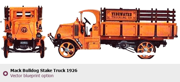 Raster blueprint of the 1926 Mack Bulldog Stake Truck Heavy Truck. This free downloadable image can be used for graphic projects, digital design, and 3D modeling. The file provides accurate exterior proportions of the vehicle. Model year: 1926. Body type: Heavy Truck.