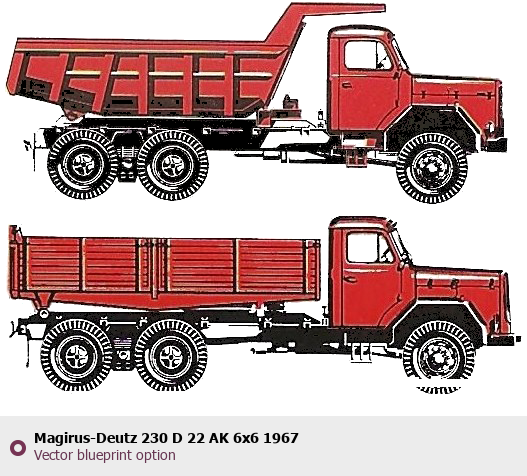 Raster blueprint of the 1967 Magirus-Deutz 230 D 22 AK 6x6 Heavy Truck. This free downloadable image can be used for graphic projects, digital design, and 3D modeling. The file provides accurate exterior proportions of the vehicle. Model year: 1967. Body type: Heavy Truck.