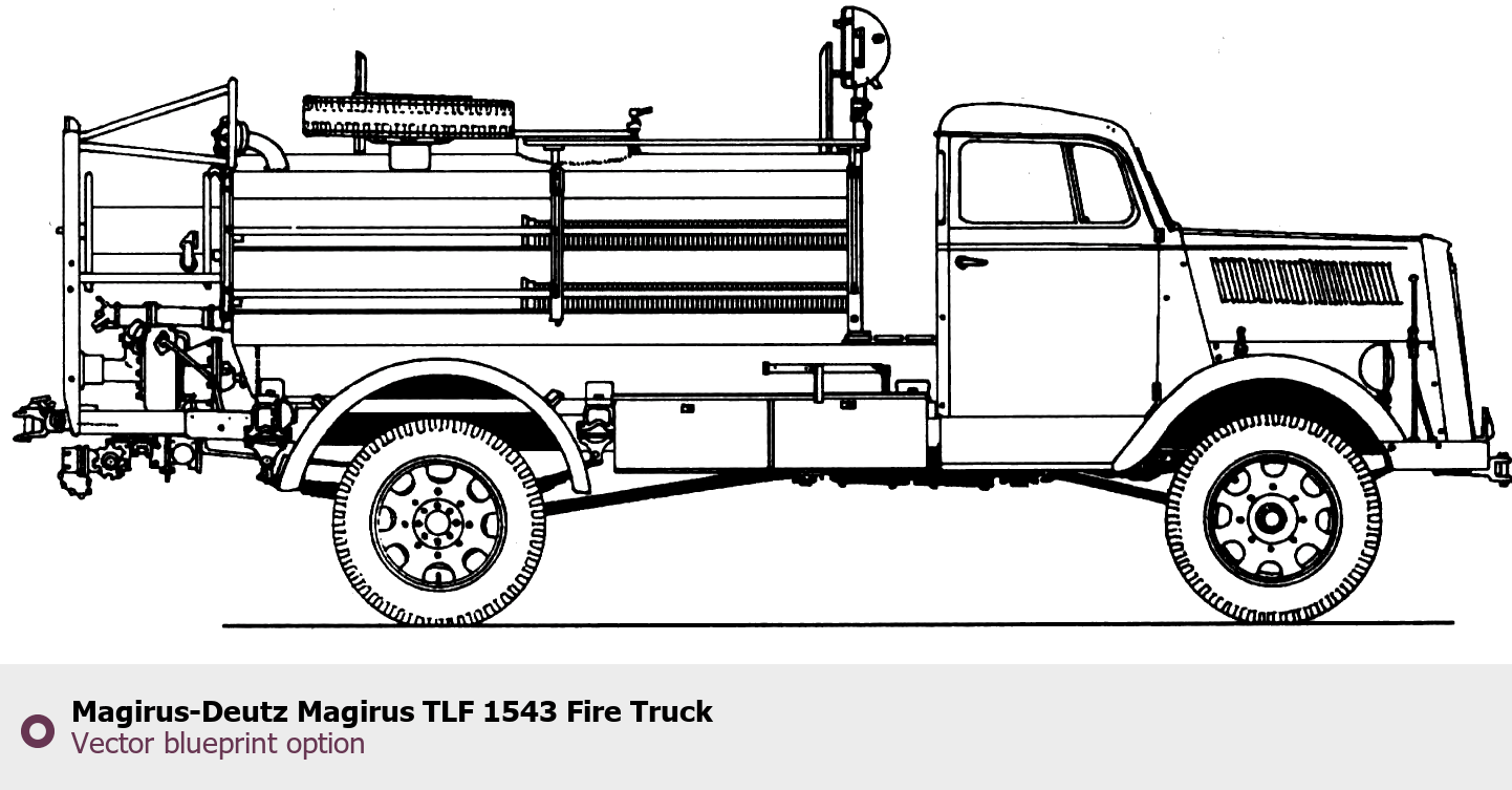 Raster blueprint of the Magirus-Deutz Magirus TLF 1543 Fire Truck Heavy Truck. This free downloadable image can be used for graphic projects, digital design, and 3D modeling. The file provides accurate exterior proportions of the vehicle. Body type: Heavy Truck.
