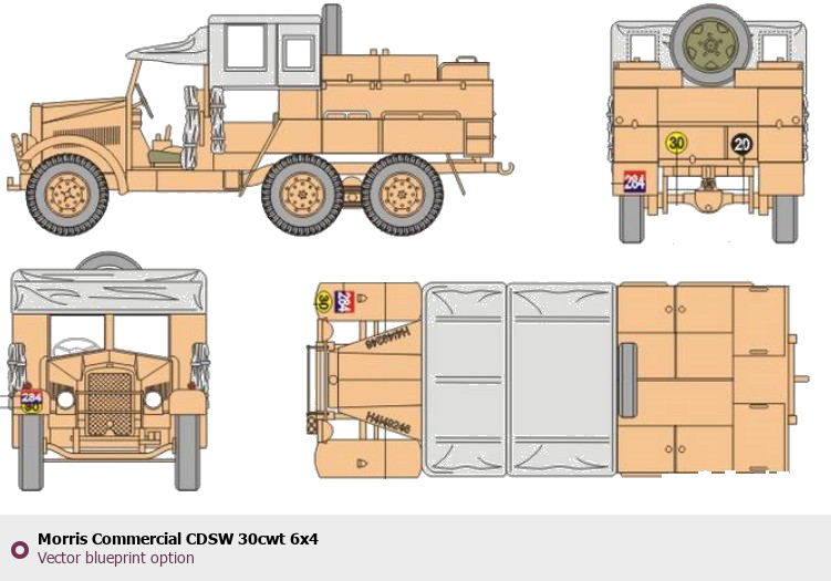 Raster blueprint of the Morris Commercial CDSW 30cwt 6x4 Tag. This free downloadable image can be used for graphic projects, digital design, and 3D modeling. The file provides accurate exterior proportions of the vehicle. Body type: Tag.