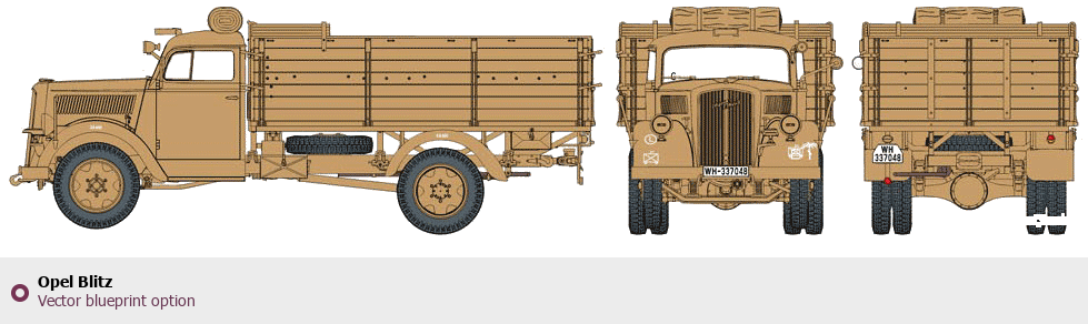 Raster blueprint of the Opel Blitz Heavy Truck. This free downloadable image can be used for graphic projects, digital design, and 3D modeling. The file provides accurate exterior proportions of the vehicle. Body type: Heavy Truck.