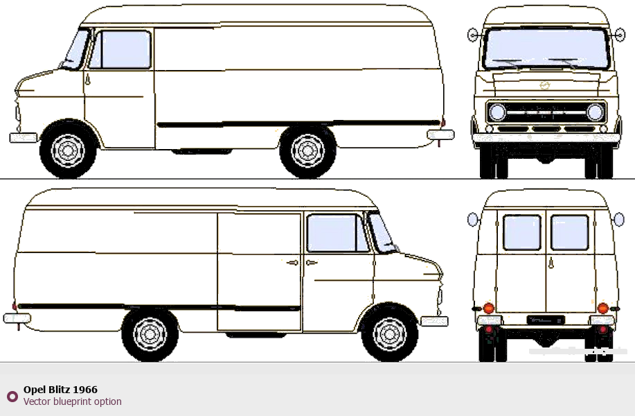 Raster blueprint of the 1966 Opel Blitz Heavy Truck. This free downloadable image can be used for graphic projects, digital design, and 3D modeling. The file provides accurate exterior proportions of the vehicle. Model year: 1966. Body type: Heavy Truck.