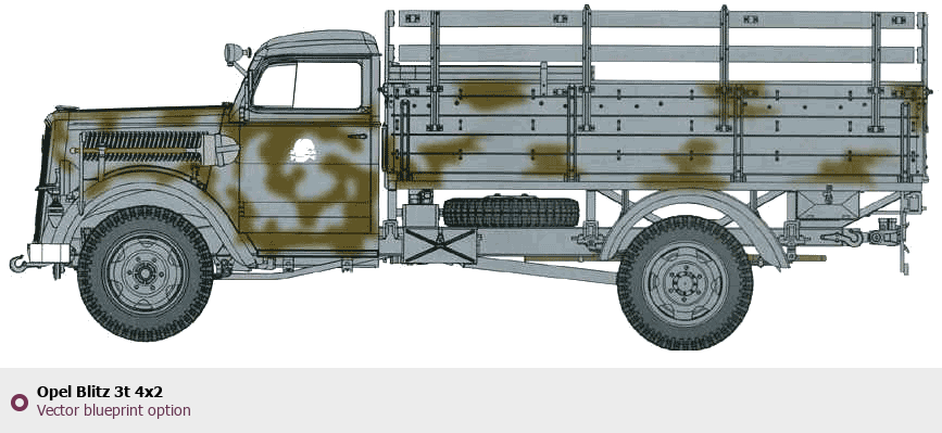 Raster blueprint of the Opel Blitz 3t 4x2 Heavy Truck. This free downloadable image can be used for graphic projects, digital design, and 3D modeling. The file provides accurate exterior proportions of the vehicle. Body type: Heavy Truck.